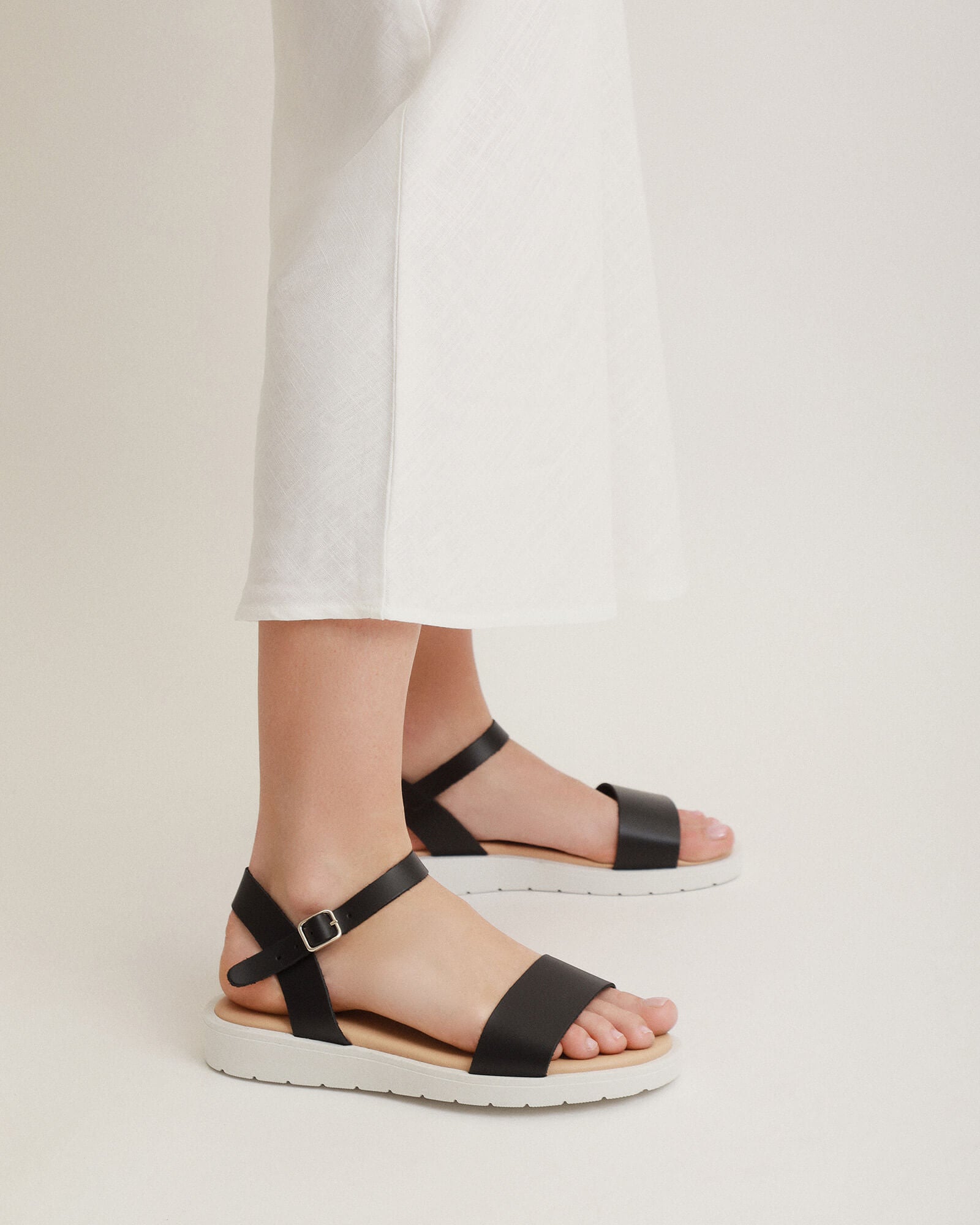 Discover your new summertime staple with ROBIN. The flat sandal features an adjustable y-back ankle strap, soft padded sock and flexible white rubber sole. Style yours with linen for a casual breezy daytime look or cotton with matching gold accessories for the evenings.
