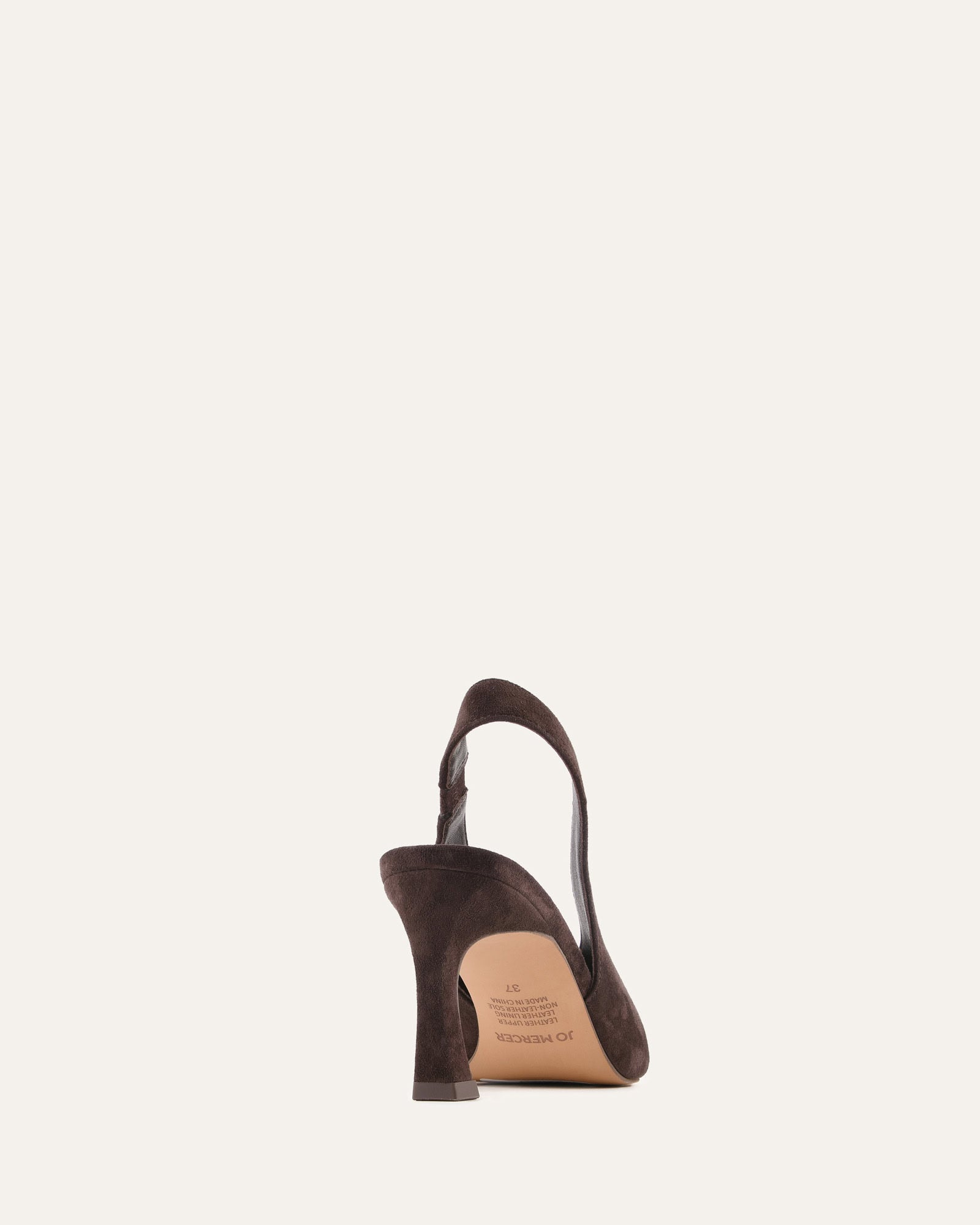 EVIE is a refined mid heel designed with a clean, modern profile. Featuring a streamlined upper and an elegant silhouette, this style delivers a polished look with understated appeal. Finished in kid suede, EVIE offers a timeless option for elevated styling.