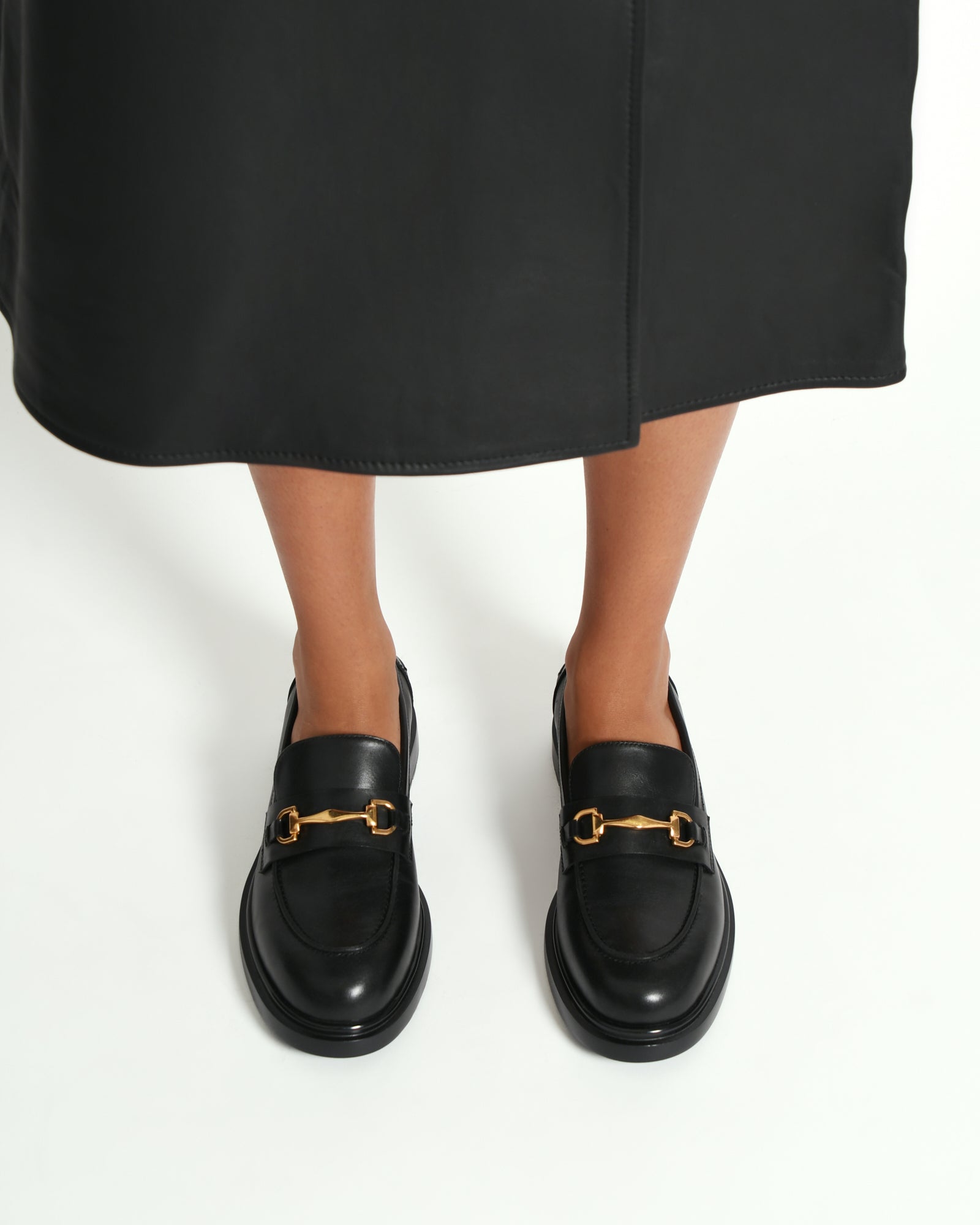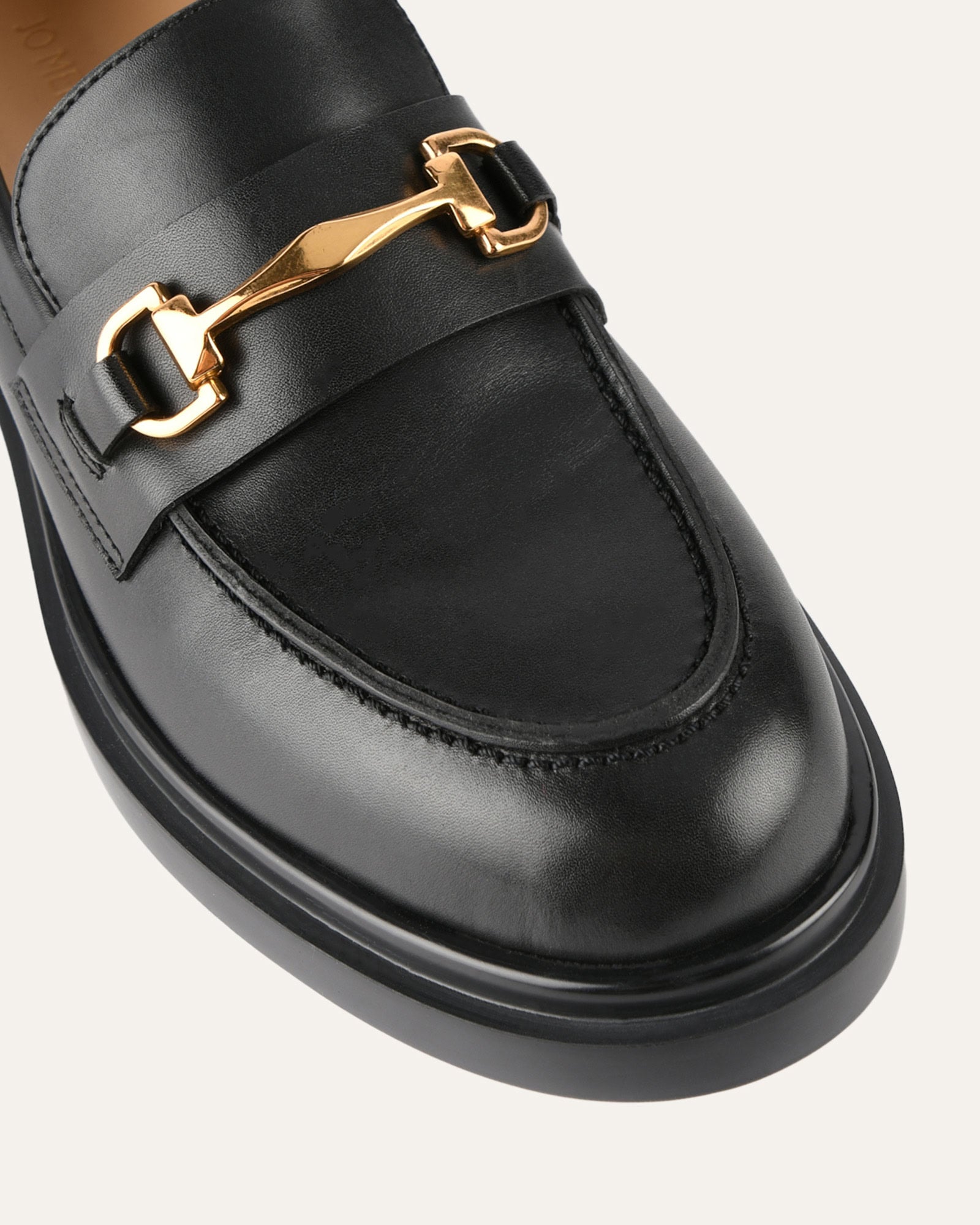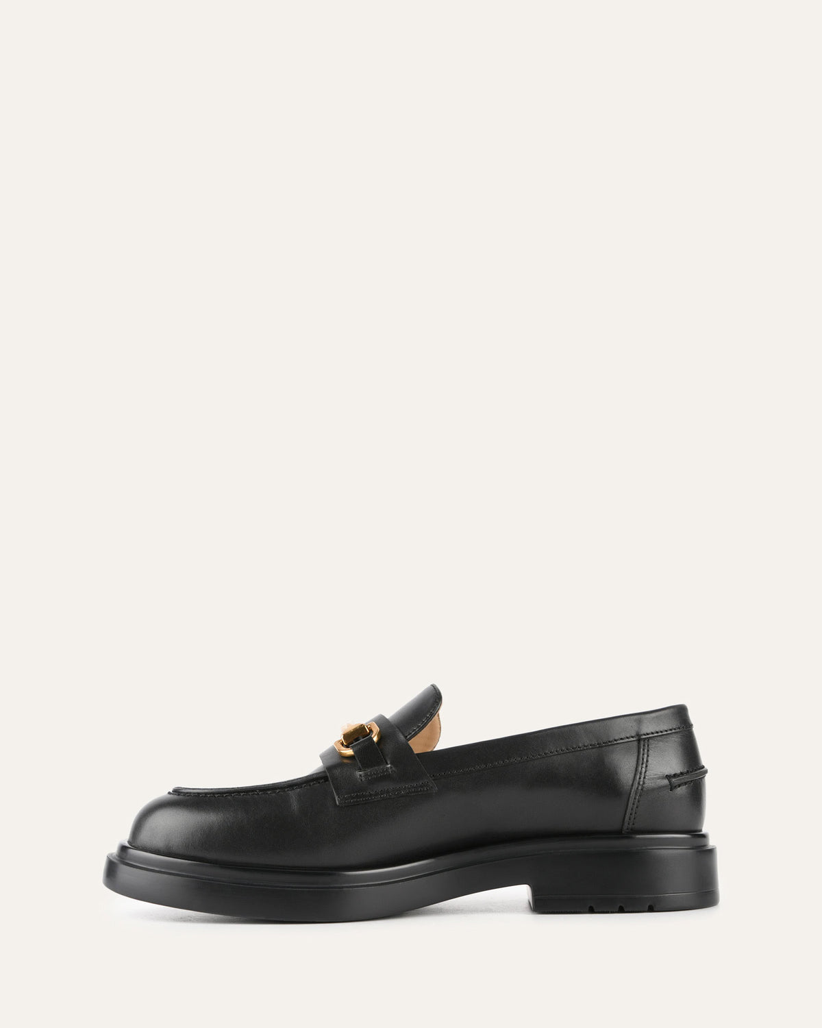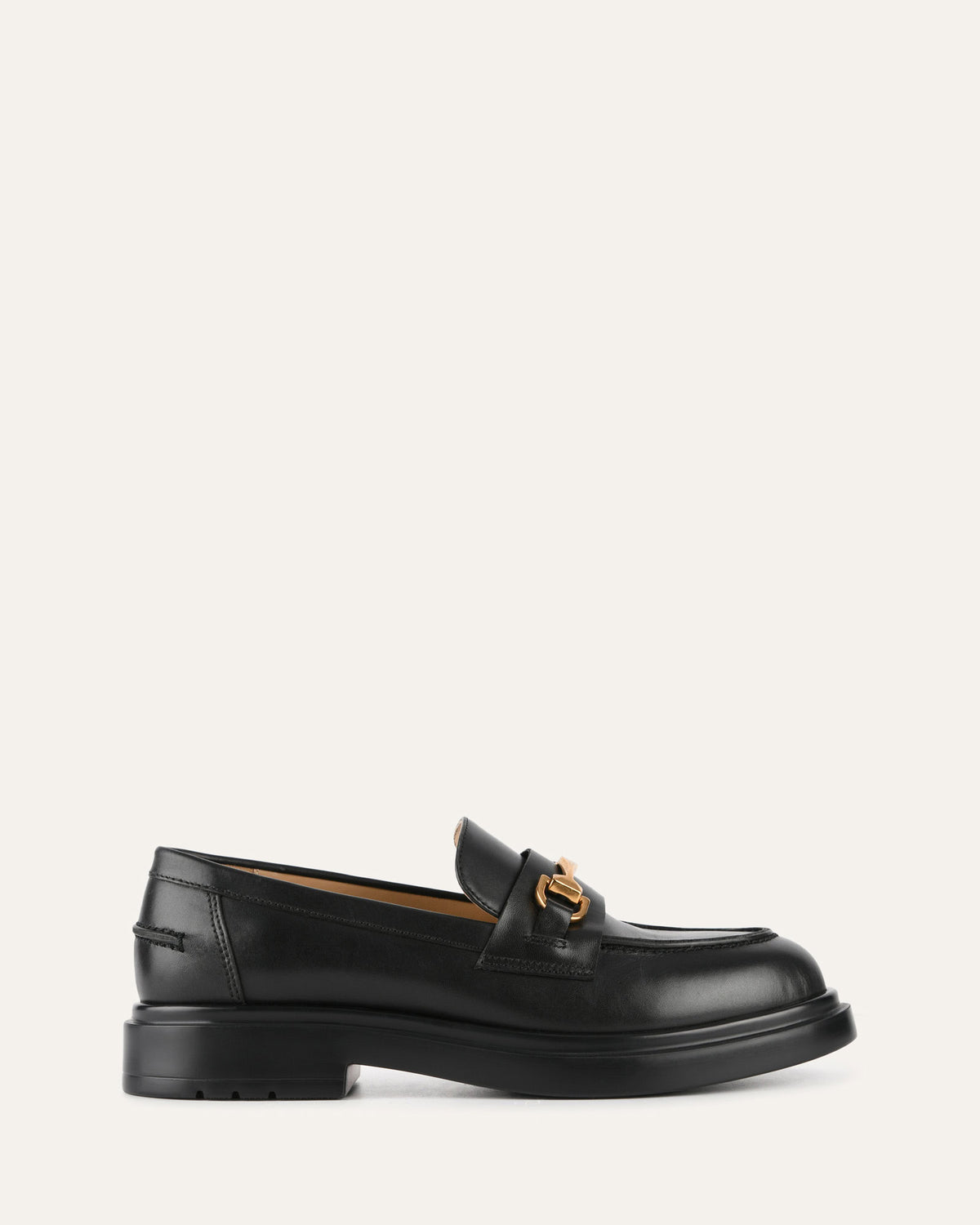 Meet JULIO, a lightweight chunky loafer crafted from smooth cow leather, featuring classic penny loafer detailing with an almond toe and trim accents. Finished with old gold hardware and an EVA rubber outsole, perfect for any staple wardrobe.