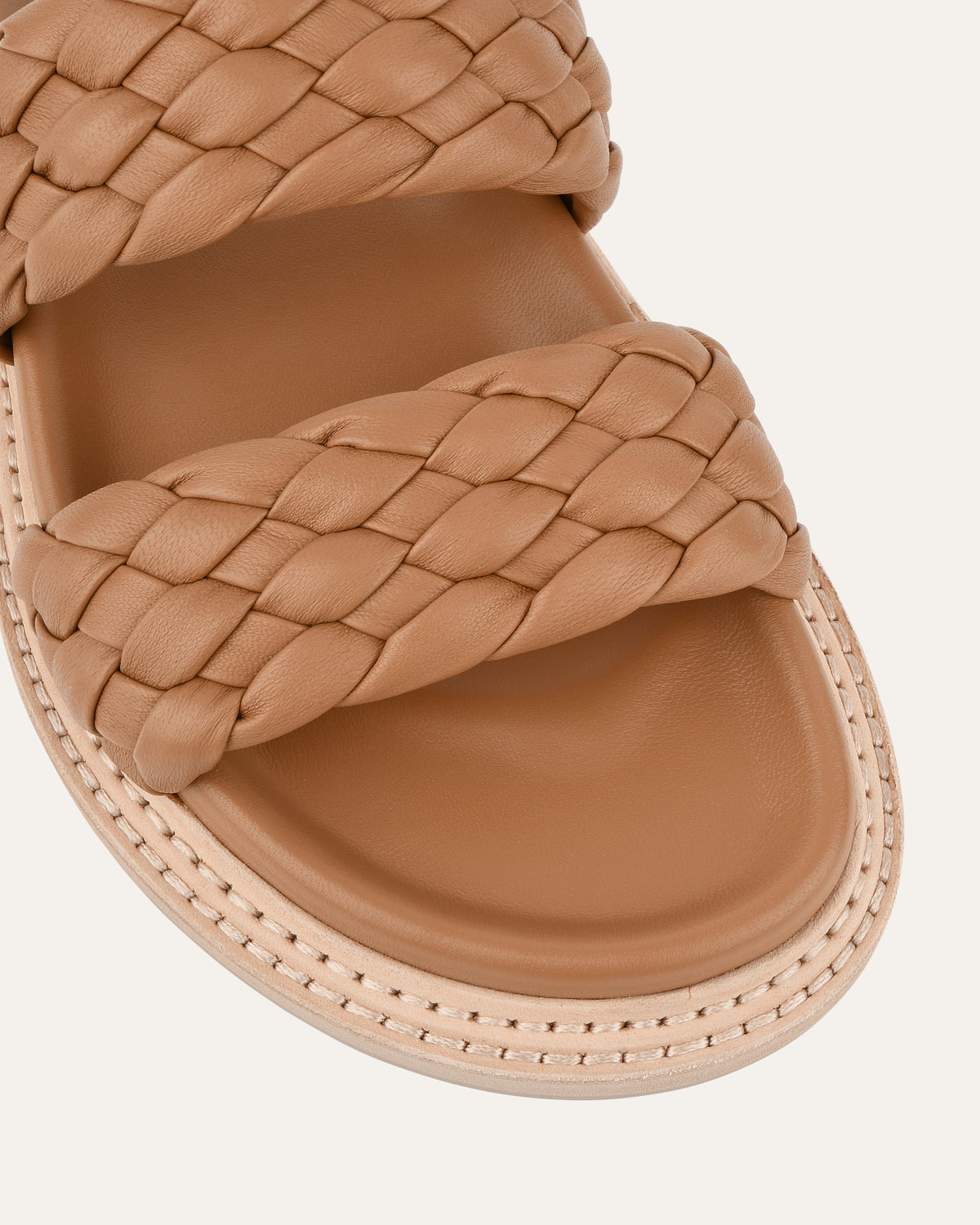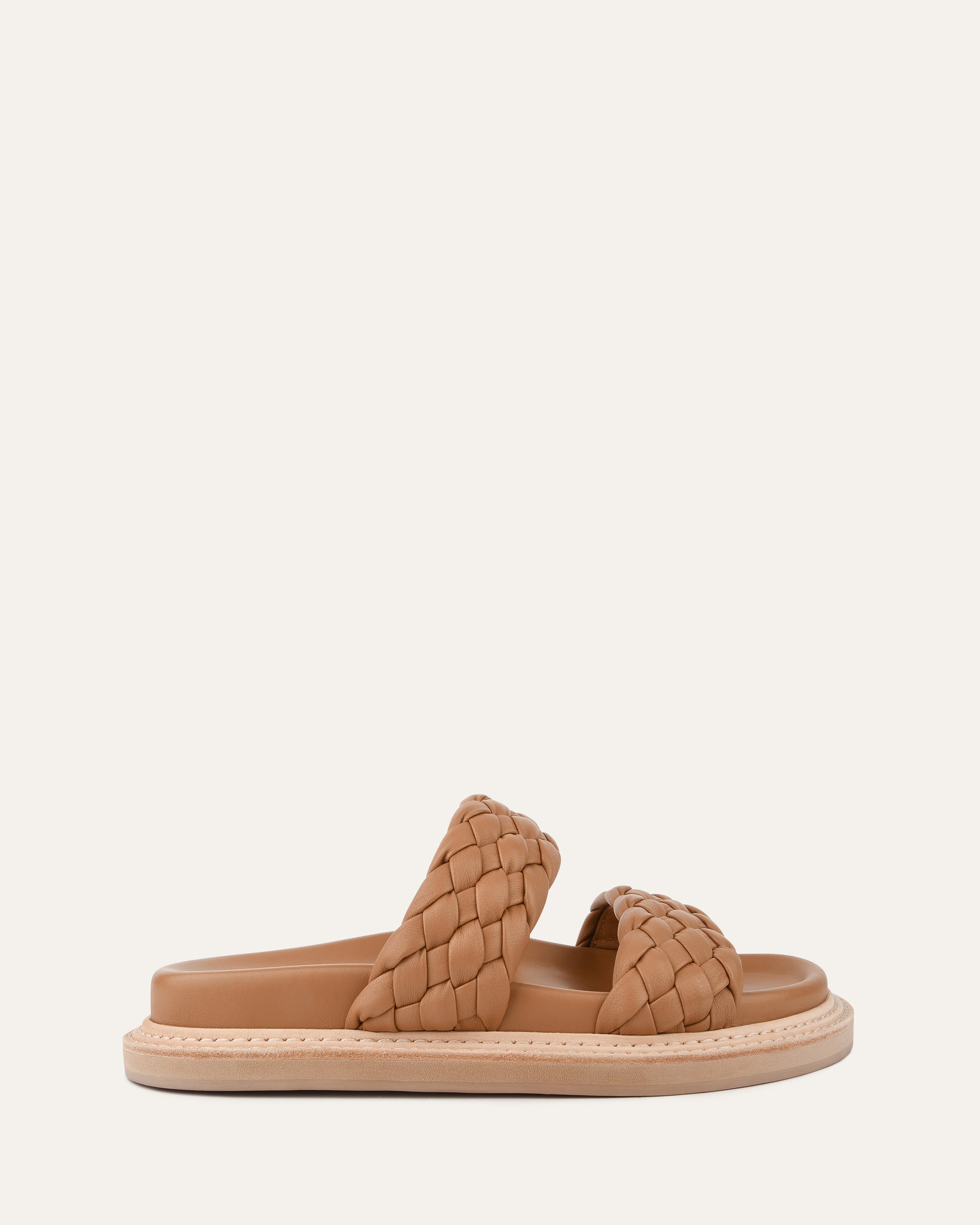 Step into summer equip with the perfect sandal. VEGA features a softly rounded toe shape, woven leather straps and kid leather lining. Style yours with breathable fabrics like linen, cotton or denim for the ultimate summer look.