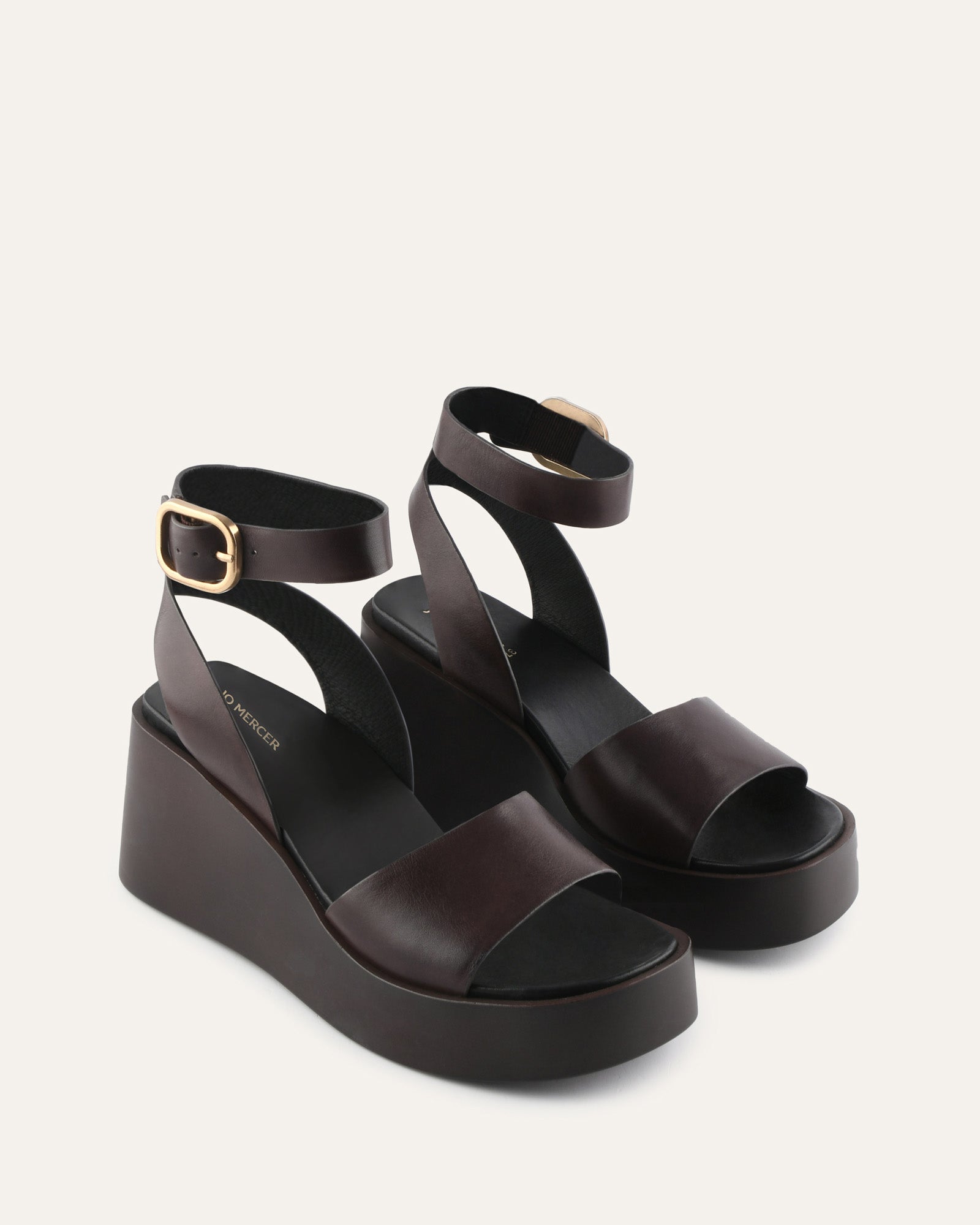 Try a new silhouette with CASSIE. A versatile wedge sandal crafted from smooth aniline calf leather, designed with a softly square toe and an adjustable ankle strap for a secure fit. Set on a lightweight PU wedge for flexibility and durability, it’s finished with brushed gold hardware for an elevated everyday look.