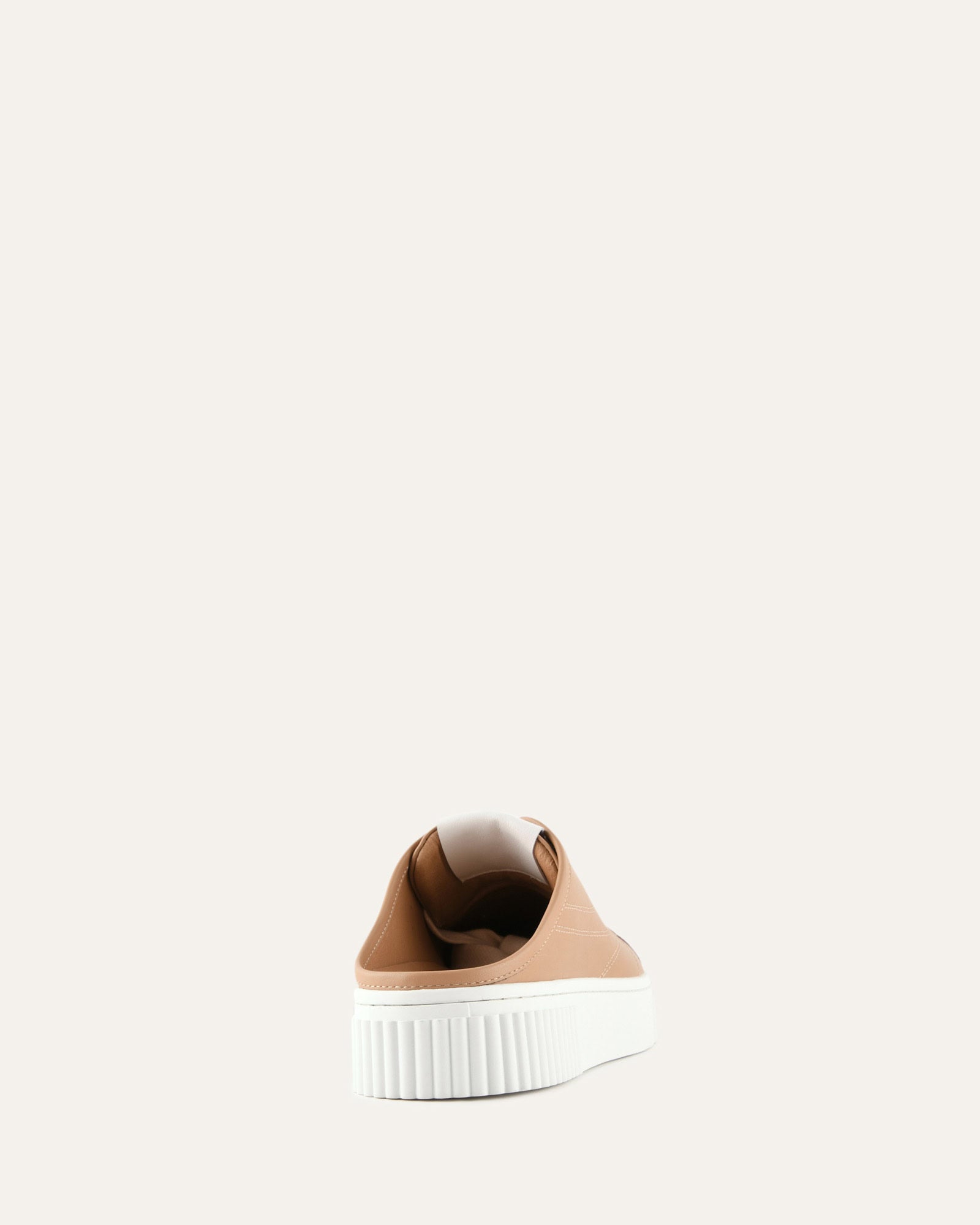 Redefine casual effortless style with CAPRI. The backless sneaker features a classic round toe and chunky ribbed rubber sole. Crafted from smooth cow leather with shiny silver eyelets and a debossed logo on the tongue, it blends casual ease with polished detail.