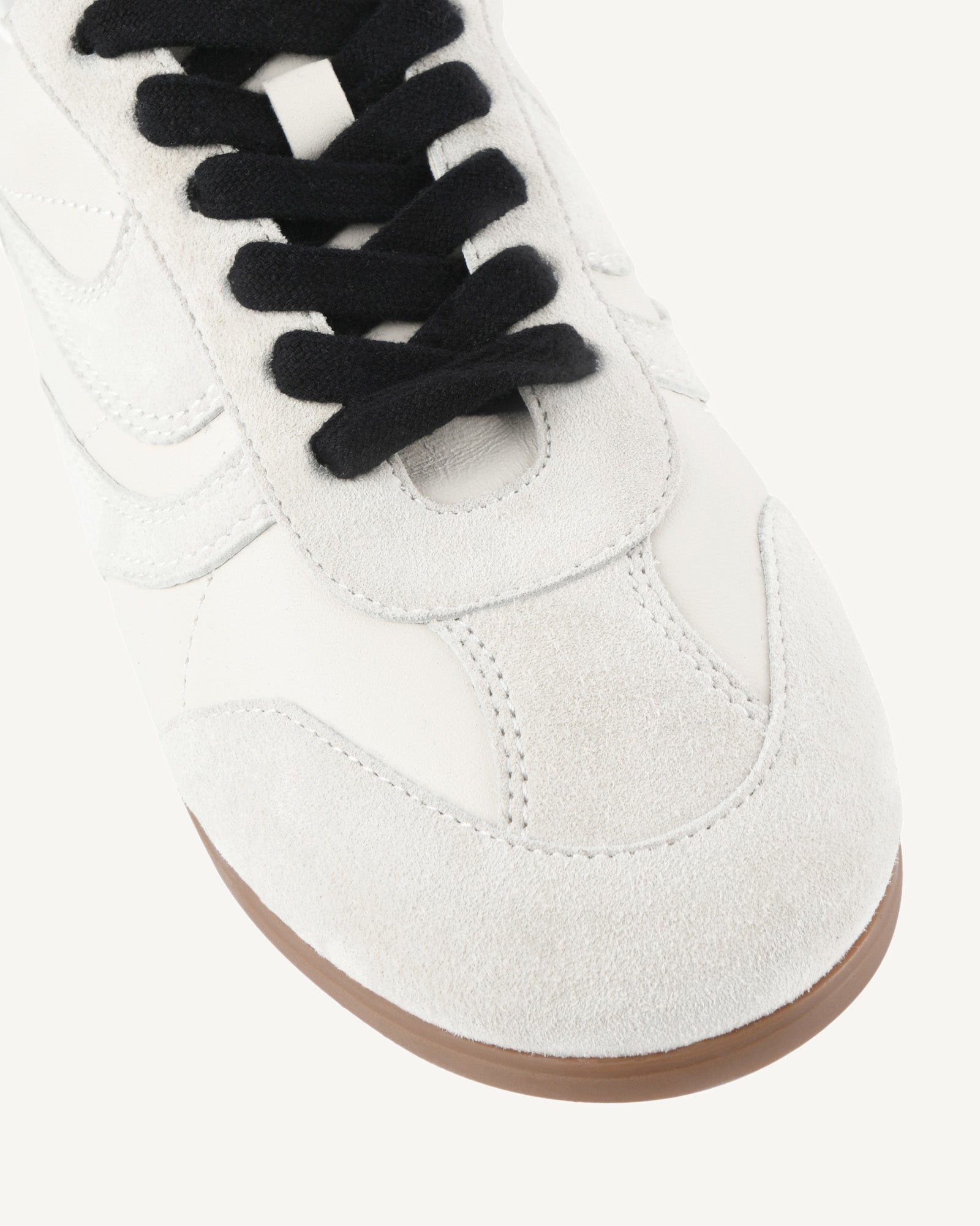 Elevate your sneaker collection with TOTTIE. A retro-inspired ballet sneaker crafted from fine cow suede and soft kid leather for a soft, nostalgic feel. Set on a thin gum outsole with a rounded toe, it's the perfect fusion of sporty ease and classic charm.