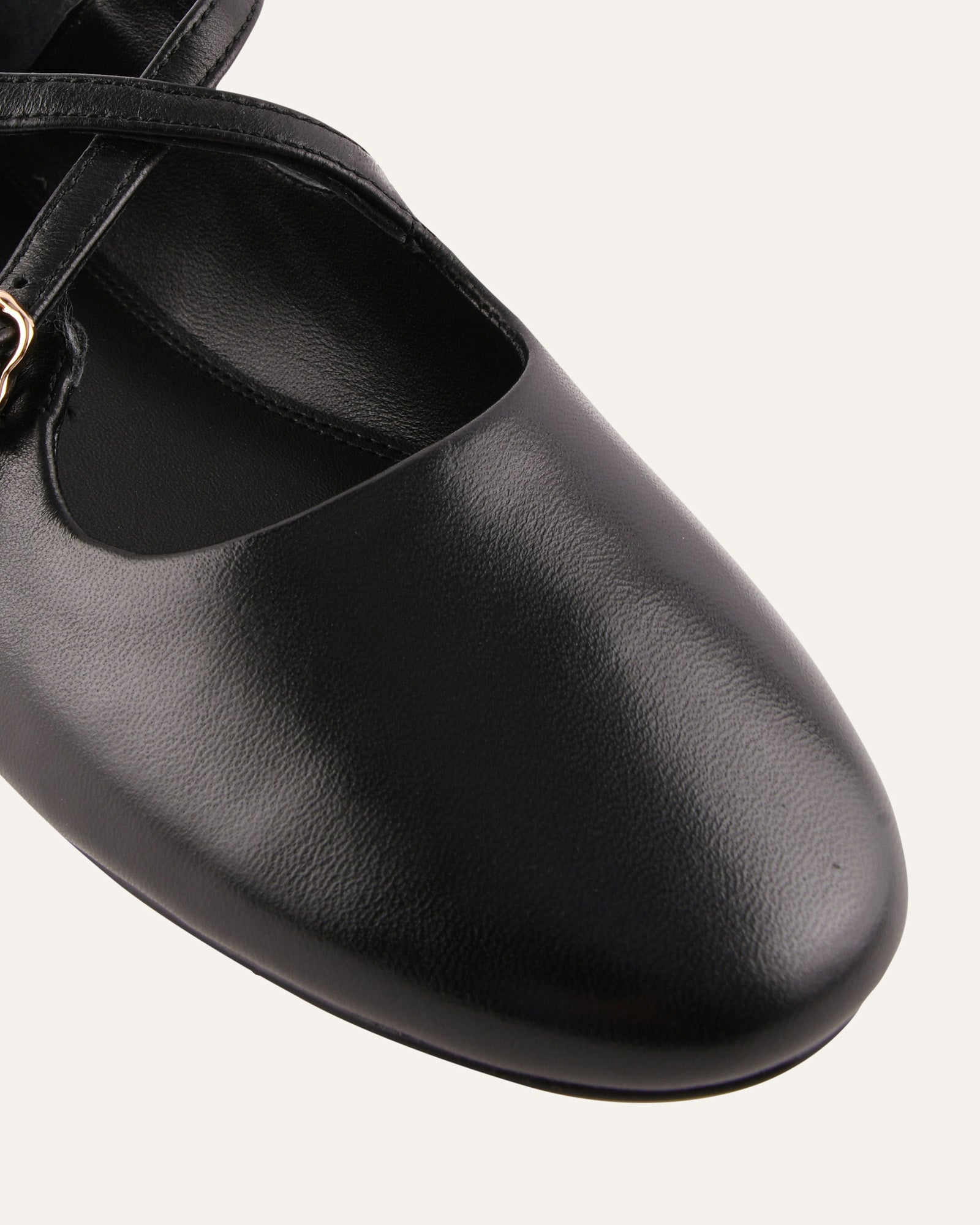 YASMINA is a refined ballet flat featuring a modern cross-over design and an elegant almond toe. Finished with a soft gold statement buckle, this style is set on a flat sole with a subtle wedge for a sleek, elevated profile. Polished and understated, YASMINA brings a contemporary edge to a classic flat silhouette.