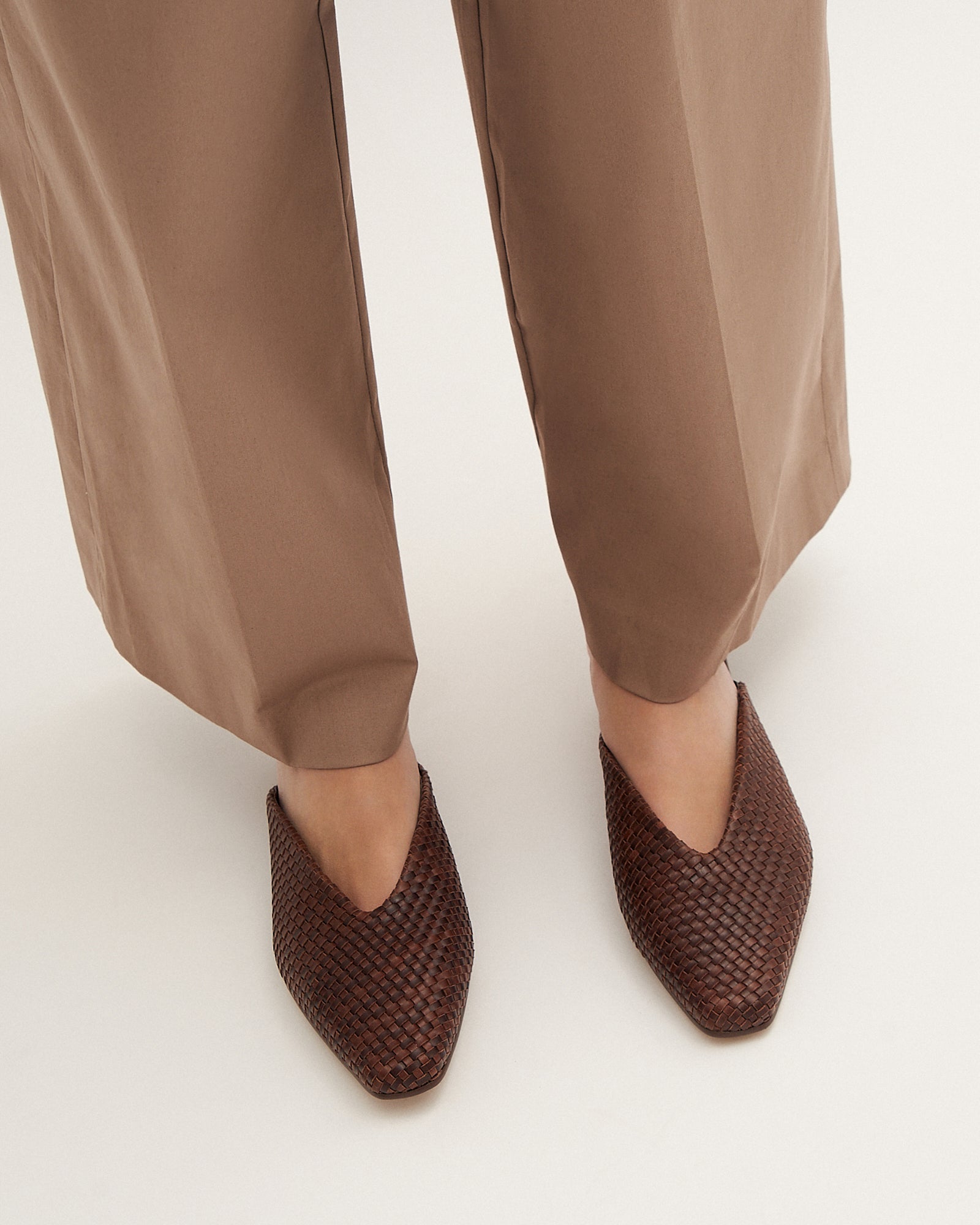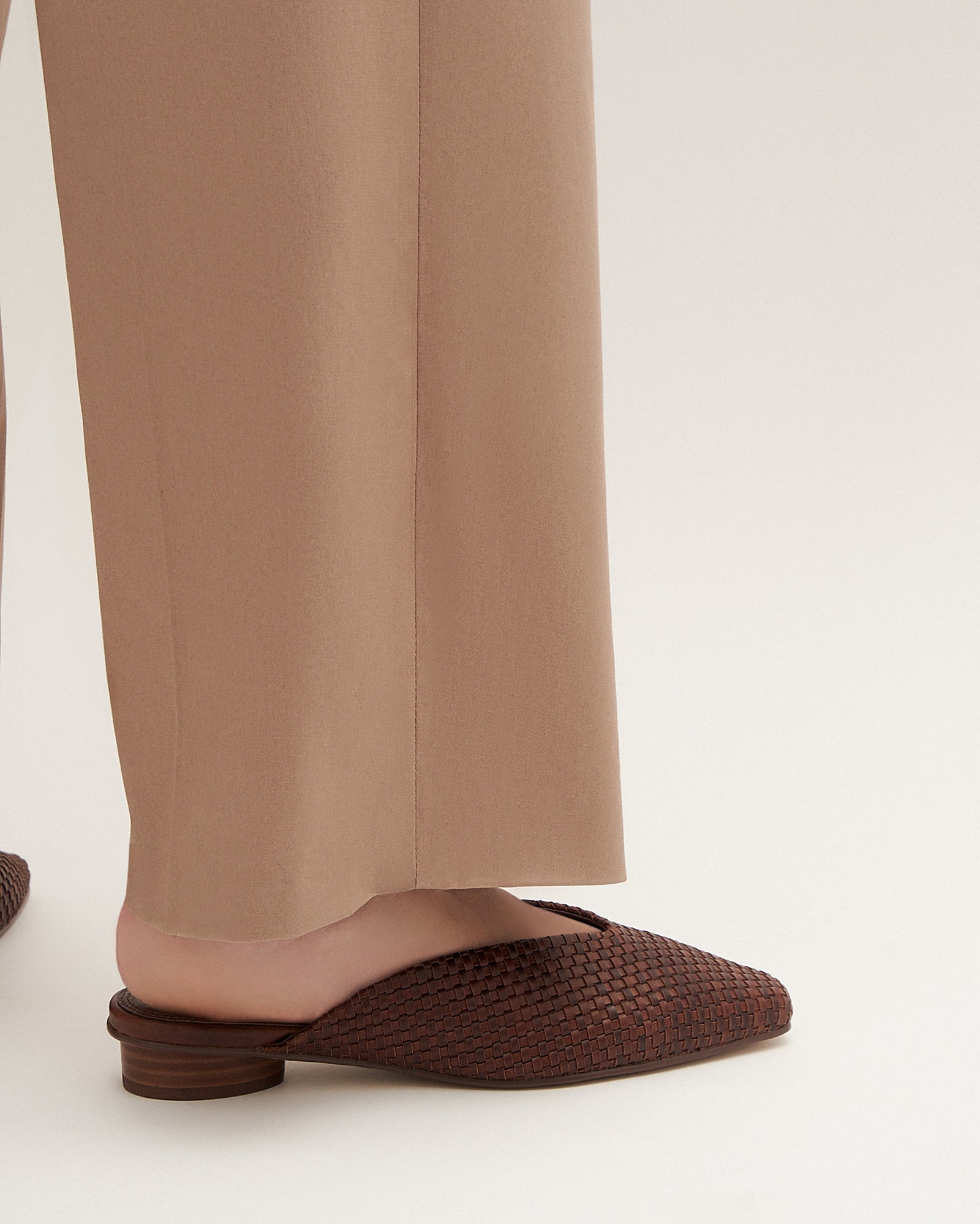 LENA is a woven mule slide crafted in rich leather, designed with a chiselled toe for a modern edge. Finished with an underset leather veneer rounded heel, it offers a refined take on effortless everyday style.