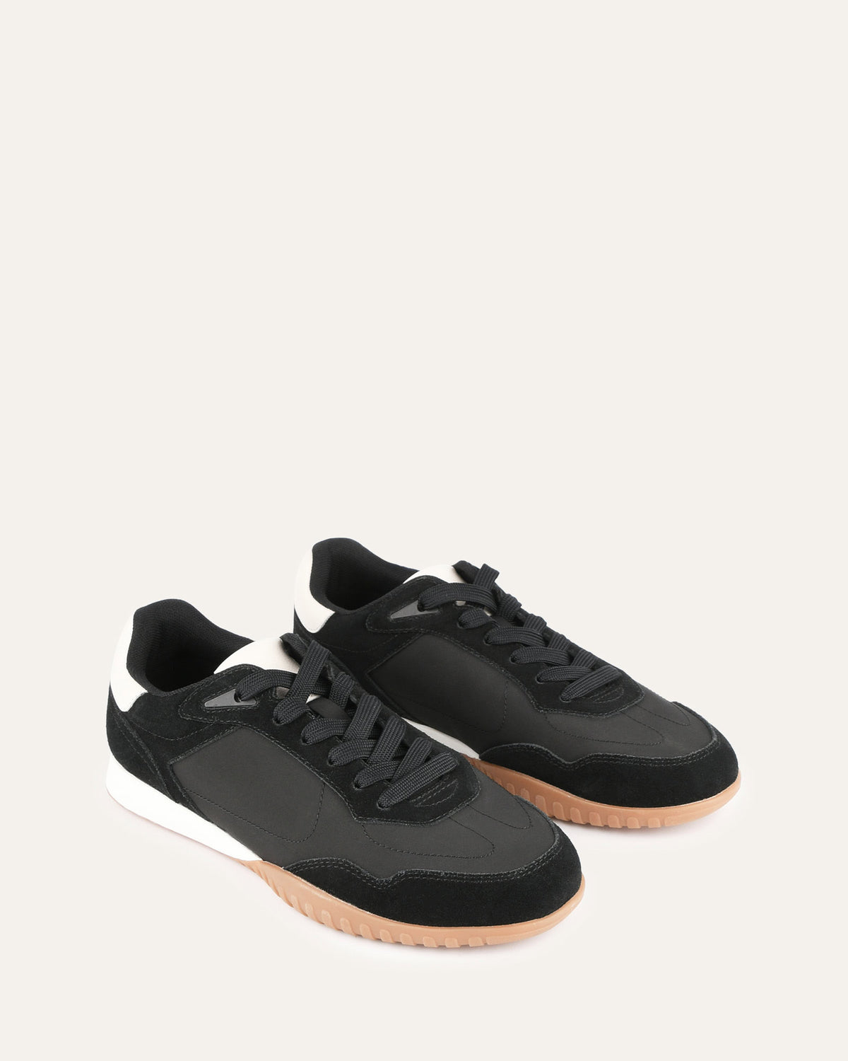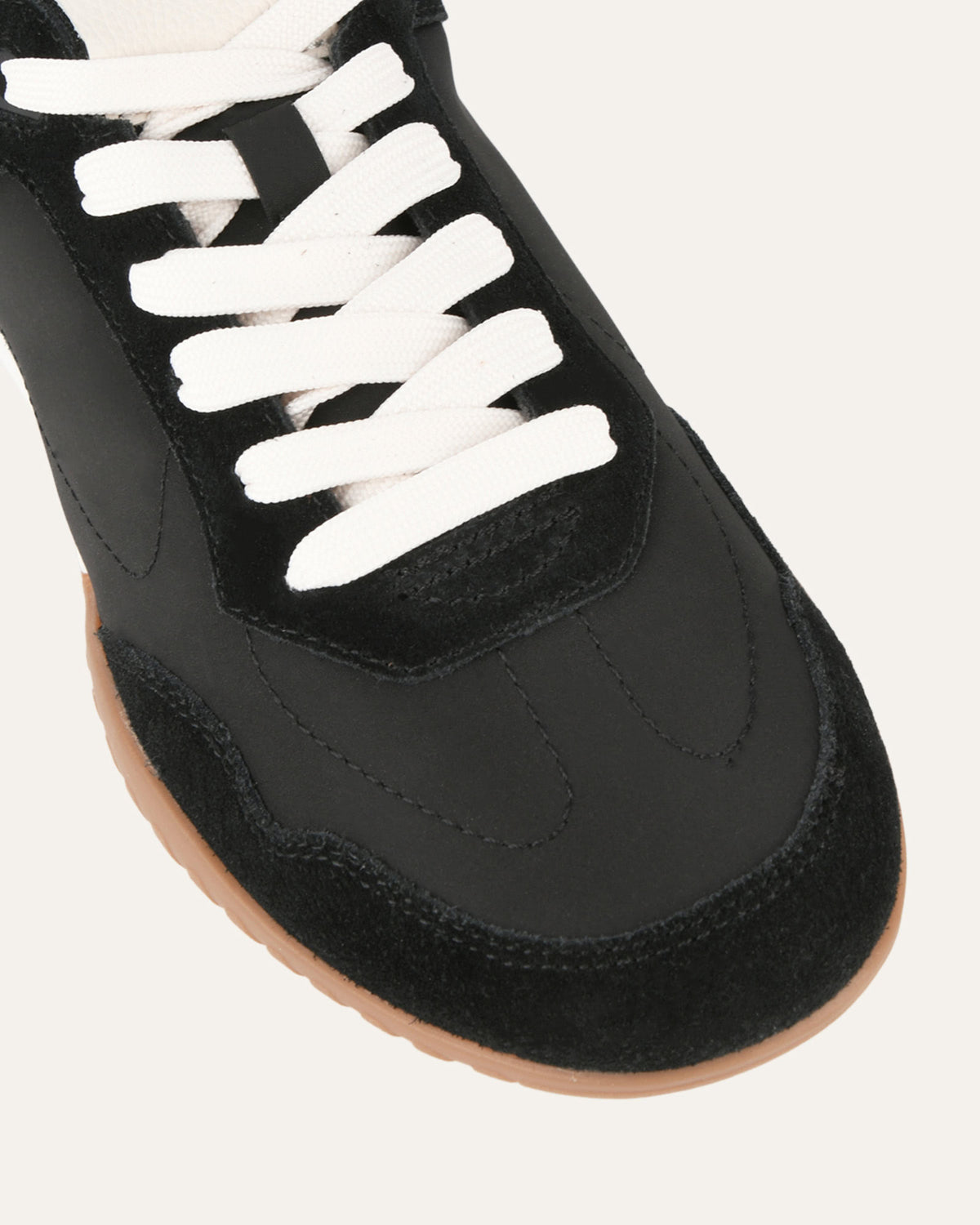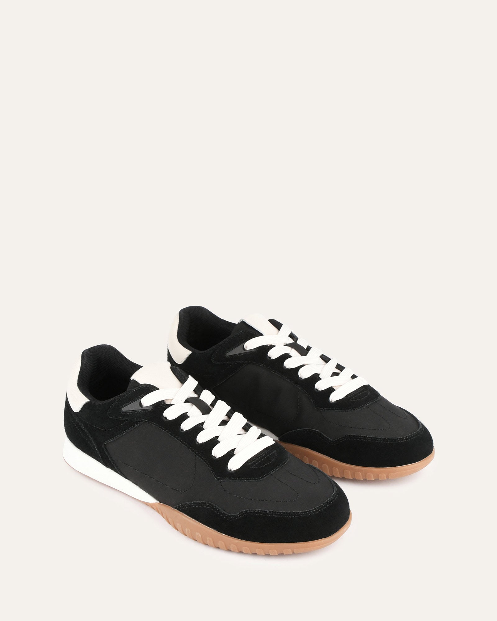 Elevate your sneaker collection with GRETA. Featuring a softly rounded toe shape and multi-material design with a suede and nylon upper. This versatile sneaker is both chic and casual for everyday wear.Â