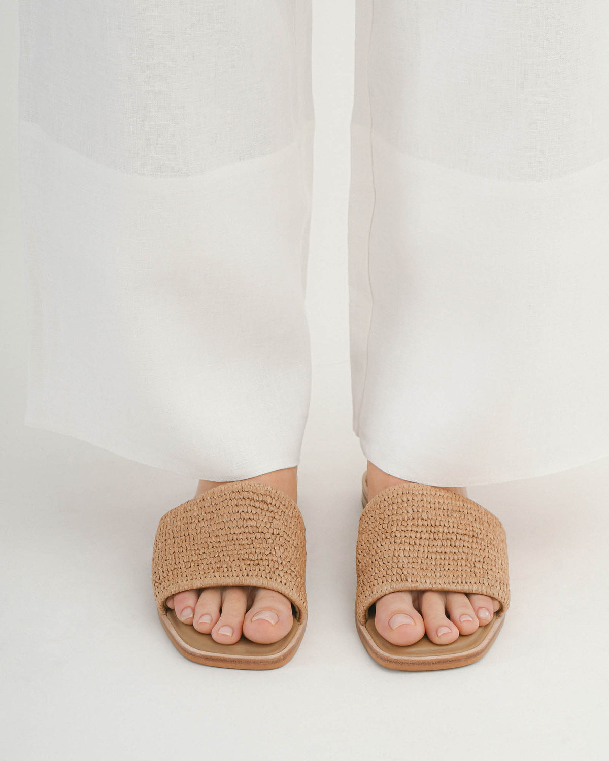 Elevate your everyday flat slide with PICASSO. Designed with a softly square toe shape, these slides combine modern elegance with all-day comfort. The stacked heel features a luxurious leather rand, woven raffia upper and a sueded resin sole, providing stability and a touch of sophistication. Style yours with denim, cotton or linen for the warmer months.