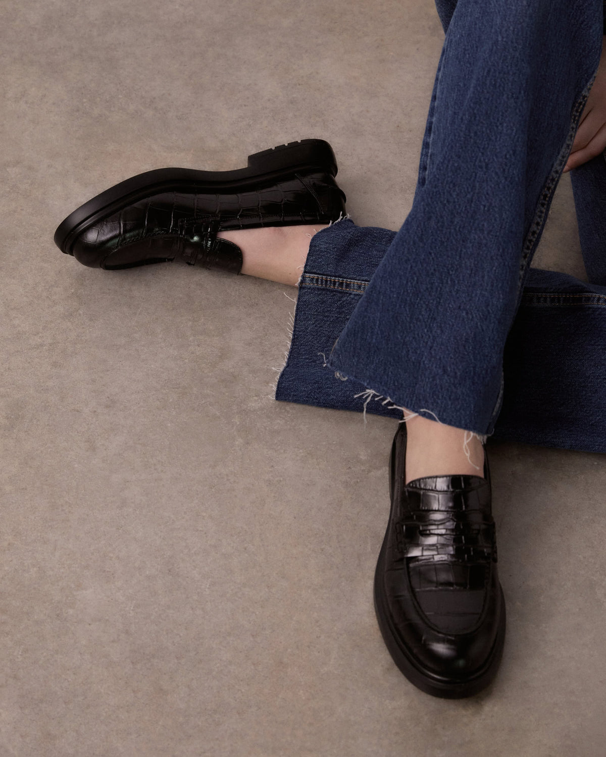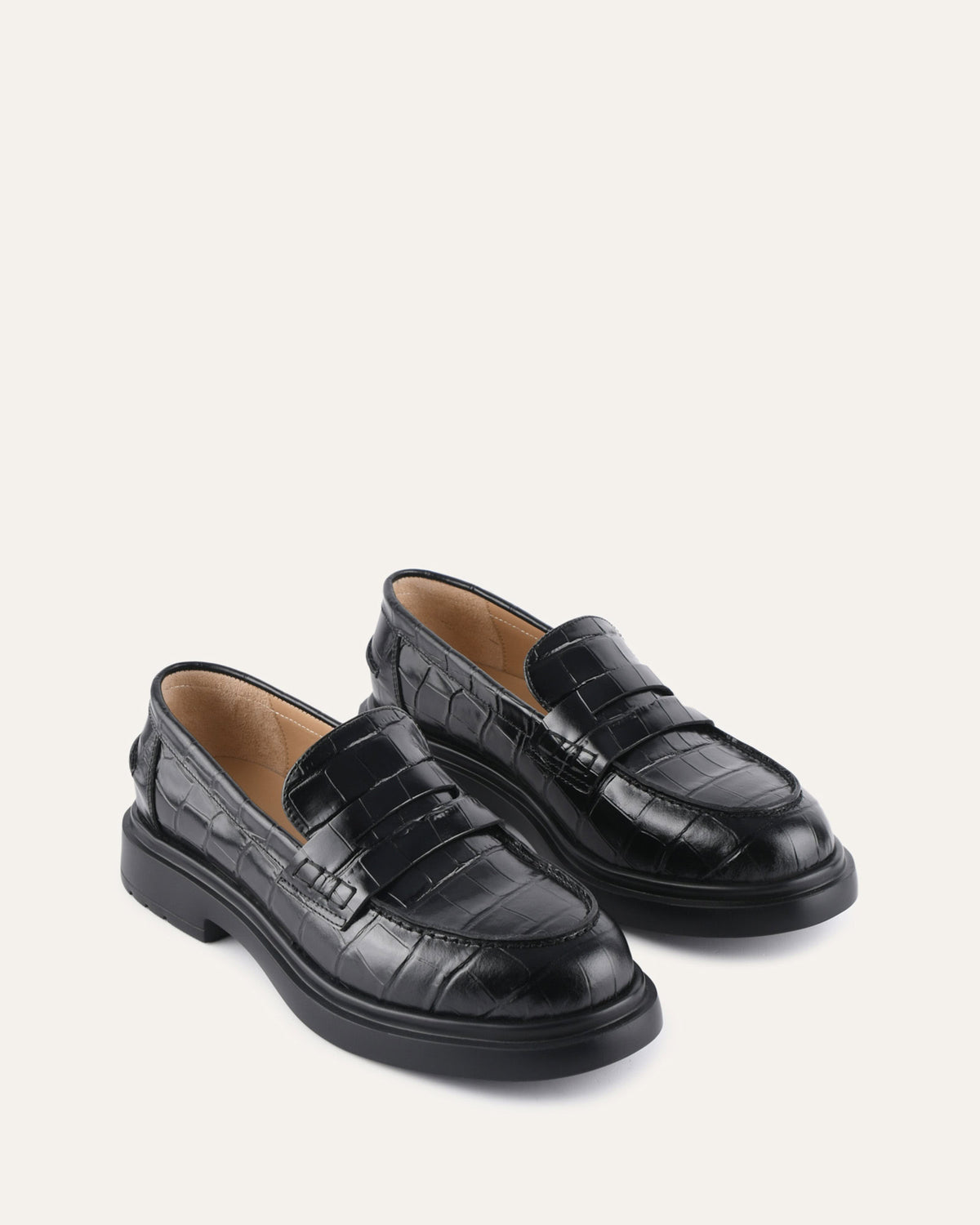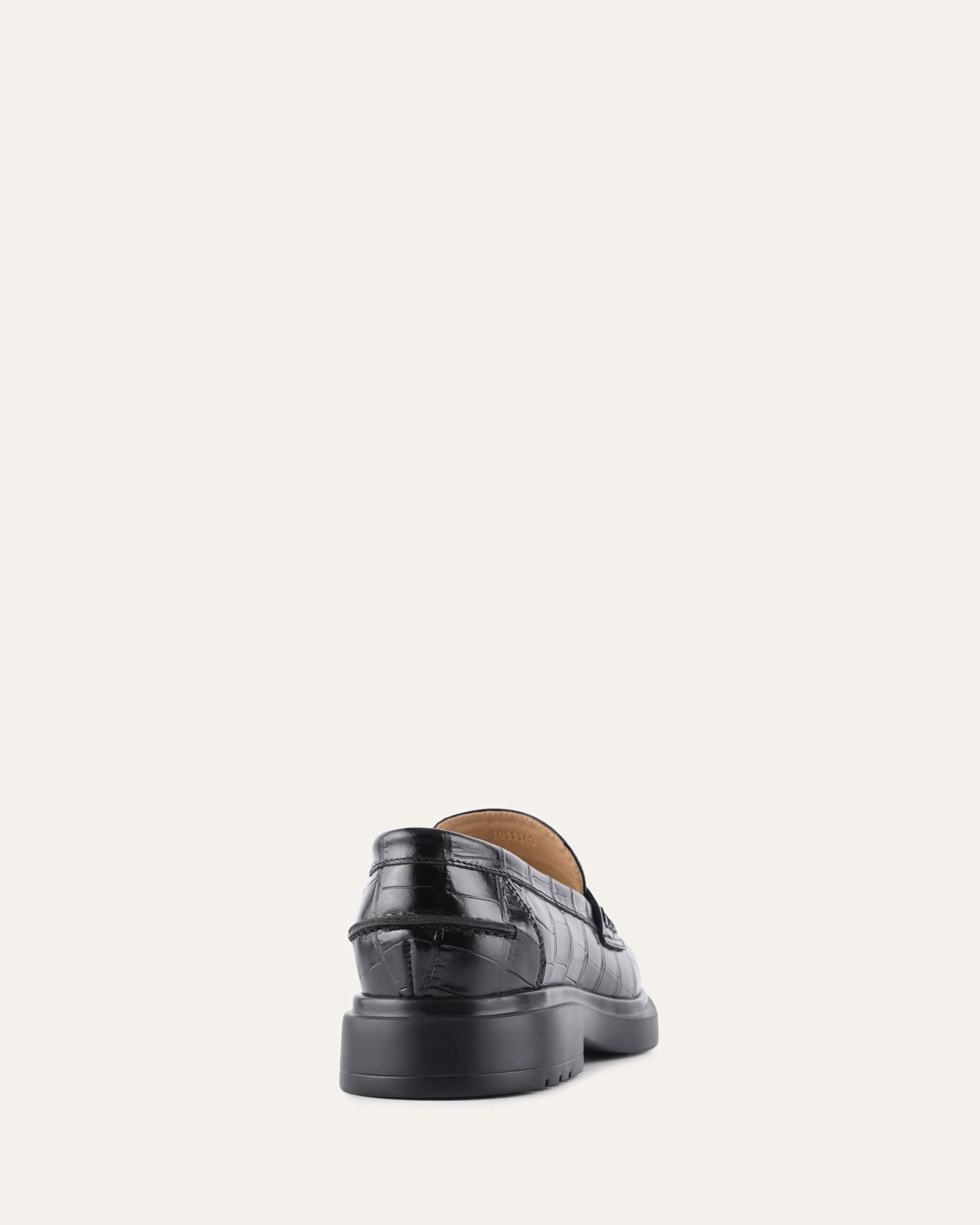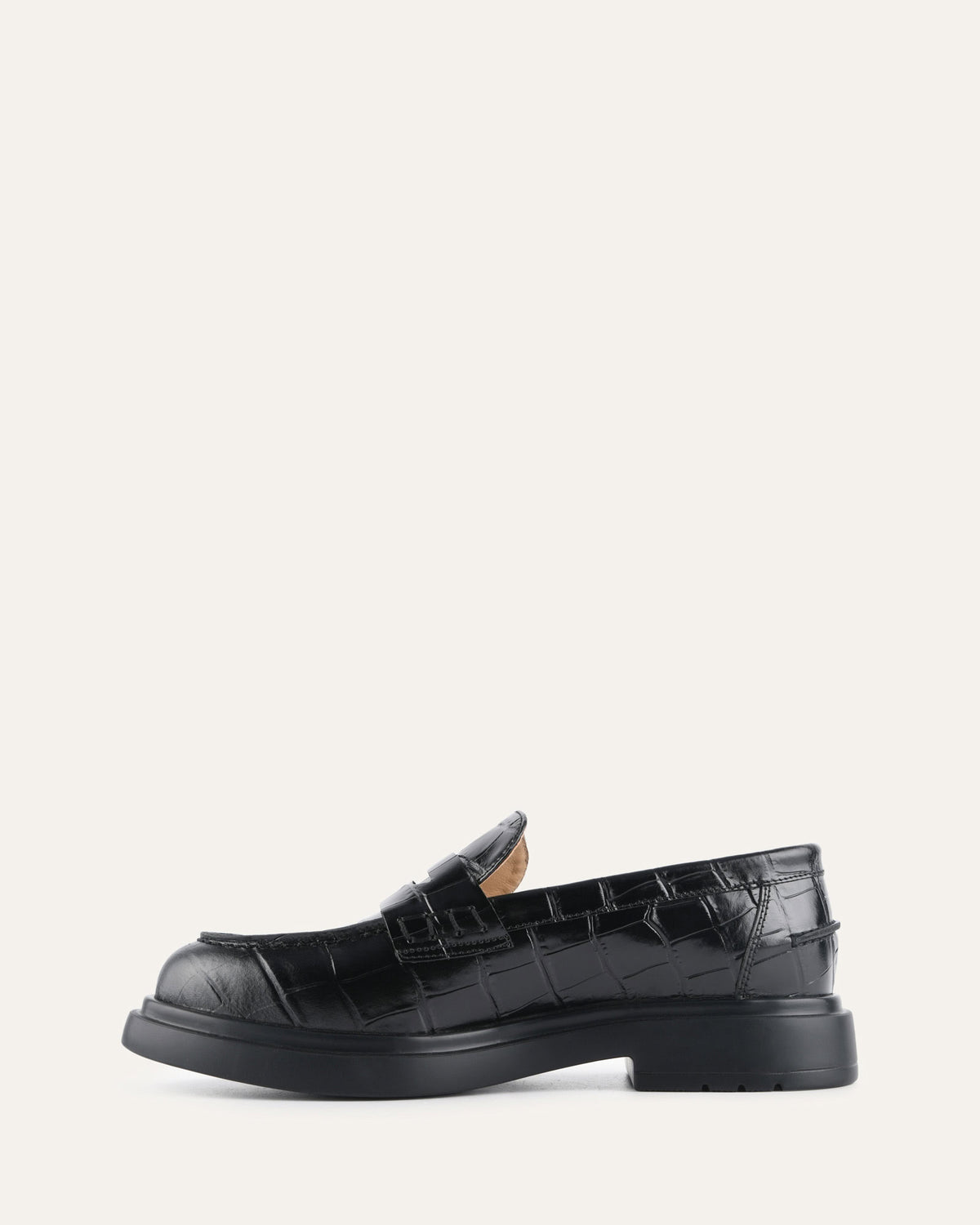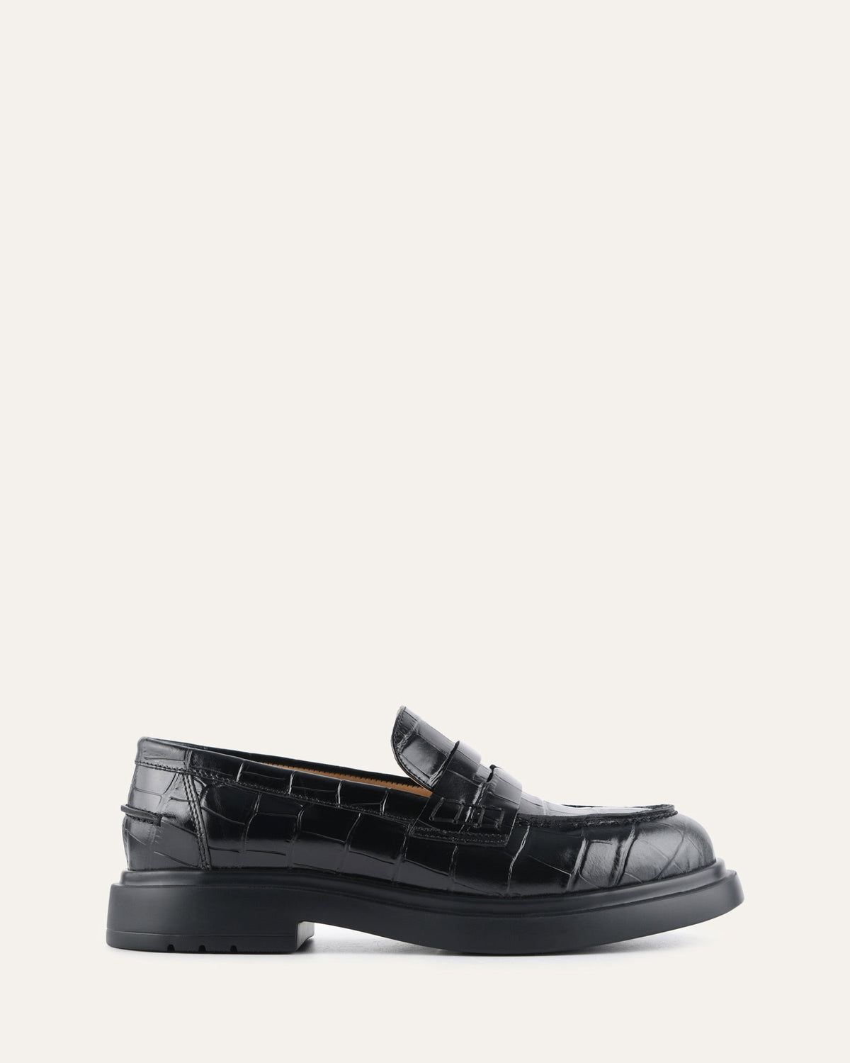 JARVIS blends timeless style with a modern silhouette, featuring a sleek almond toe and classic penny loafer detailing. Crafted from a croc embossed leather, this lightweight loafer is well-padded and finished with an EVA rubber outsole for all day wear.