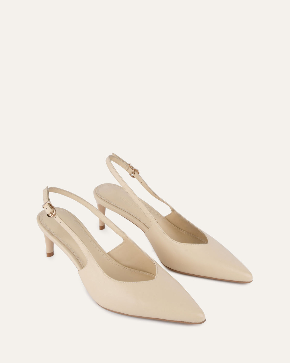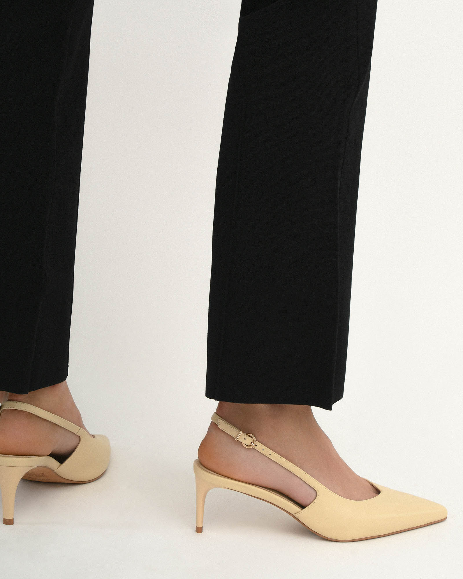 Elevate your style with JULIAN. Featuring a sleek pointed toe, kid leather upper, and slingback strap for the perfect fit. JULIAN is perfect for both day and night, making them a versatile addition to your wardrobe. Style yours with event wear or your favourite pair of denim.