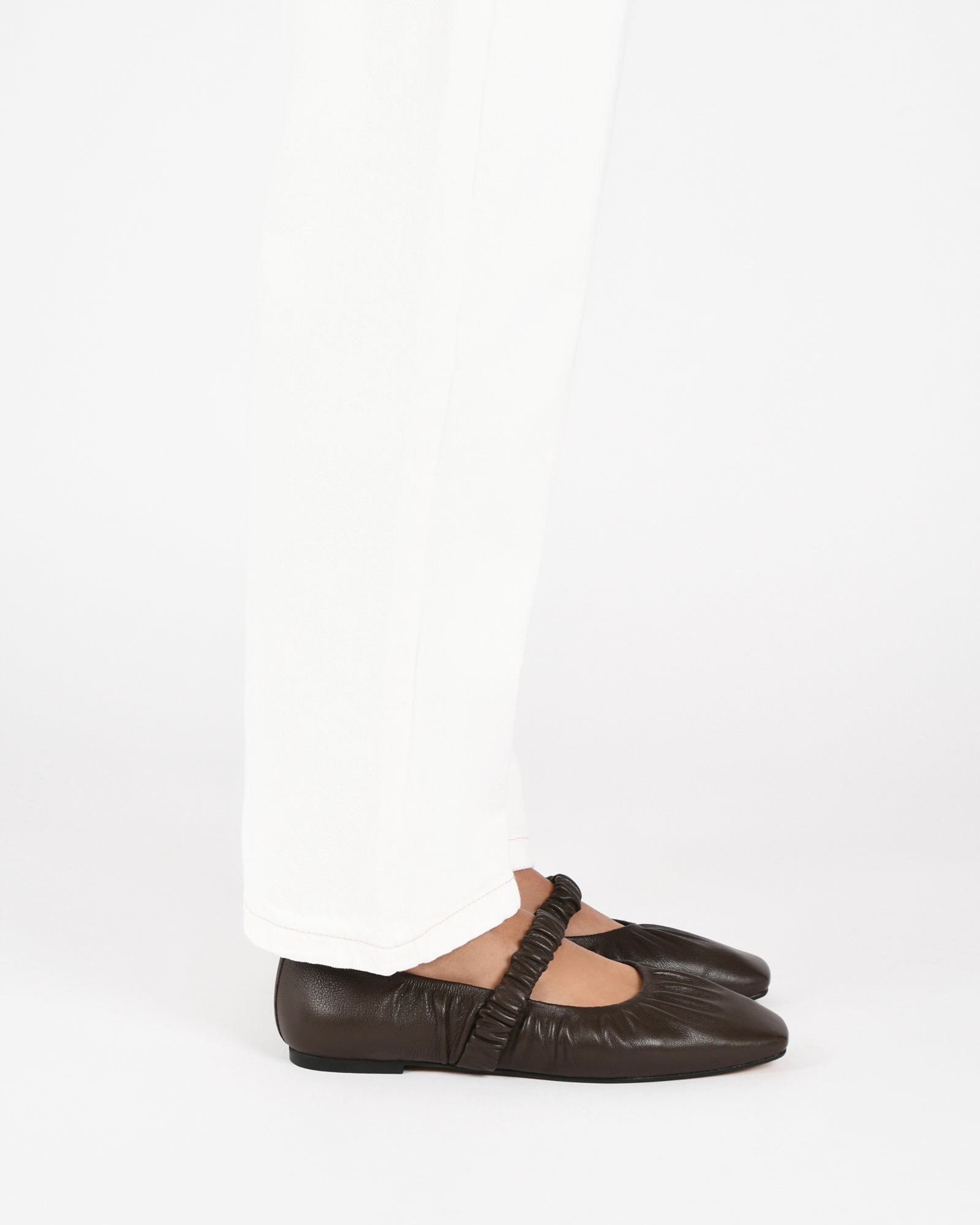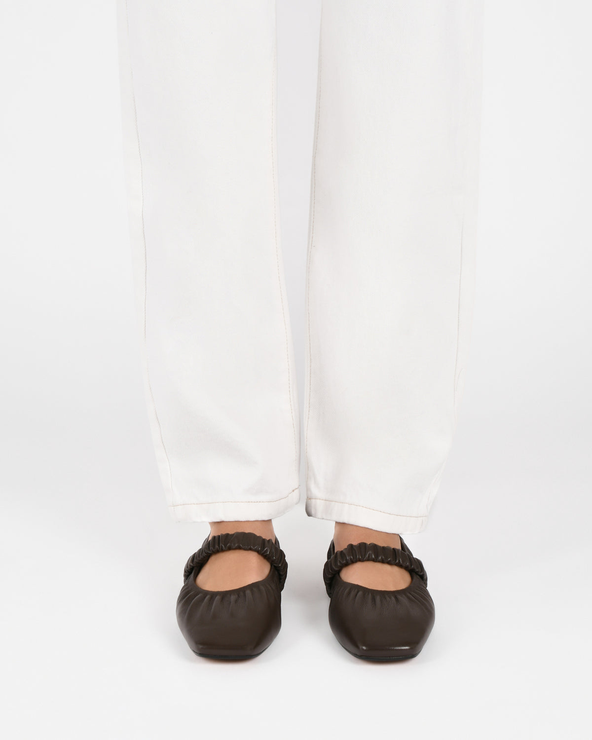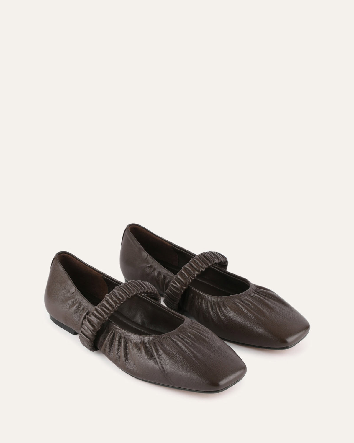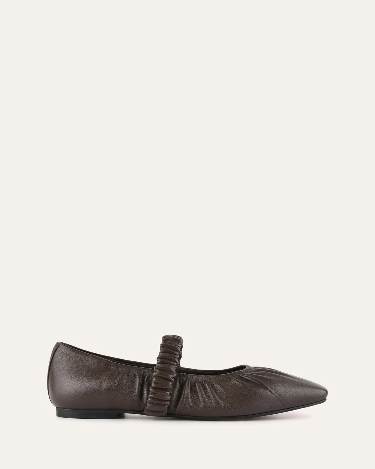 Add a new staple to your wardrobe with KEELY. This scrunch flat in buttery soft leather features a single unit heel and elastic Mary-Jane strap and softly squared toe.