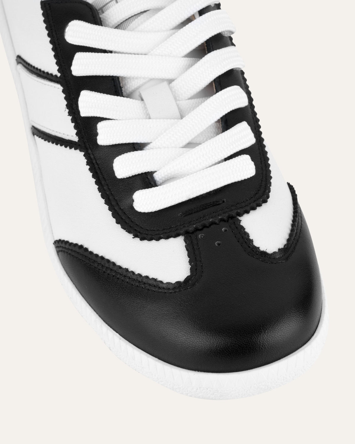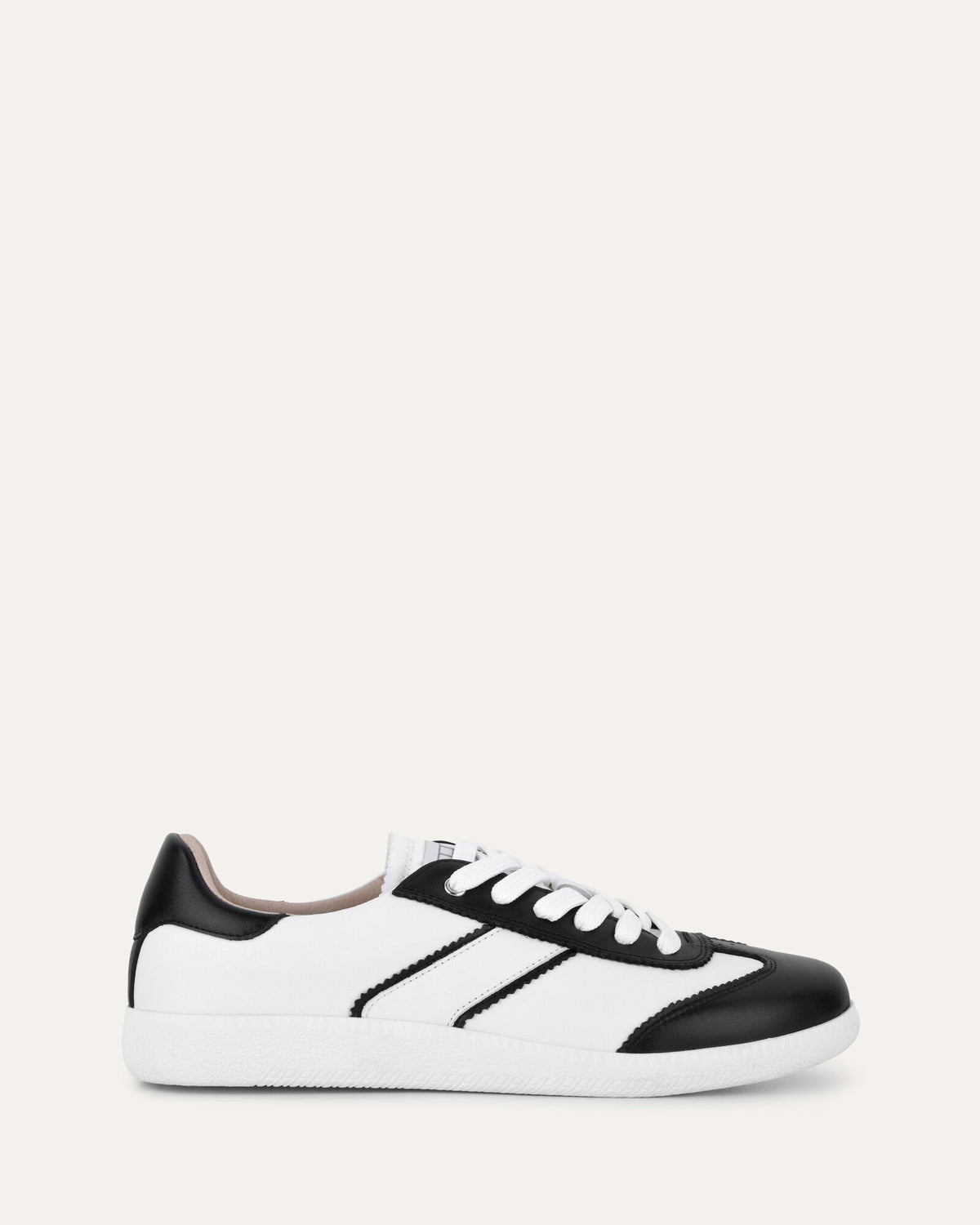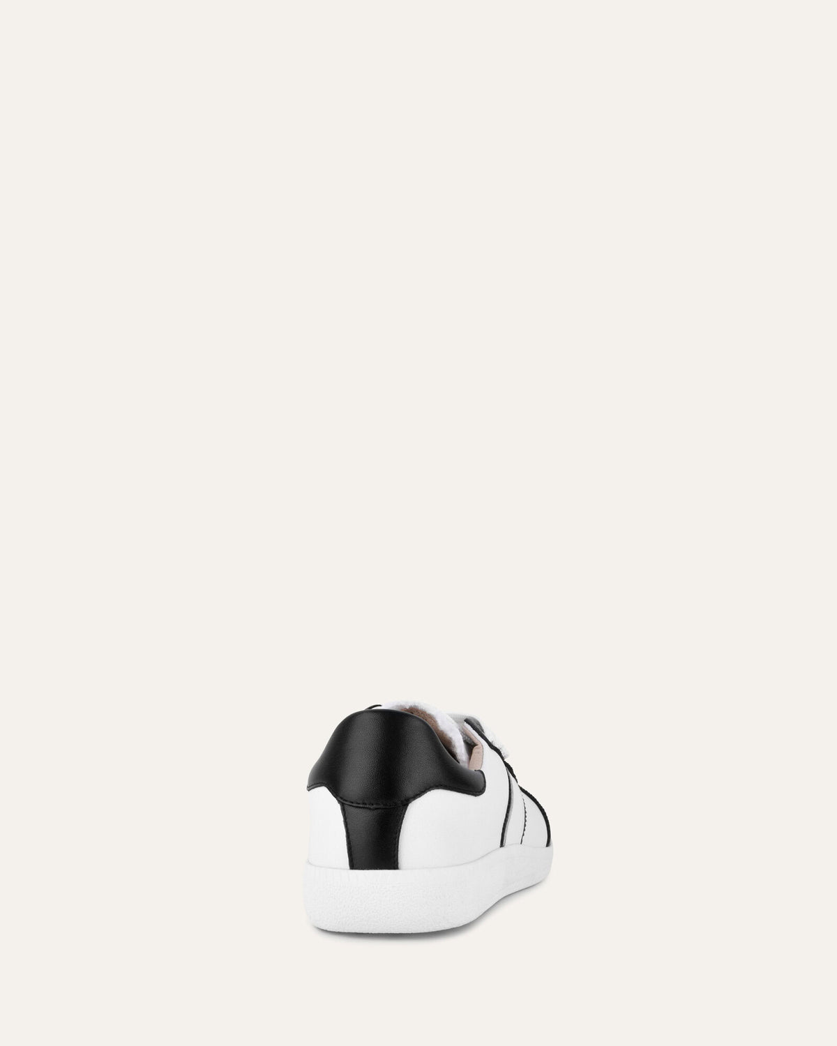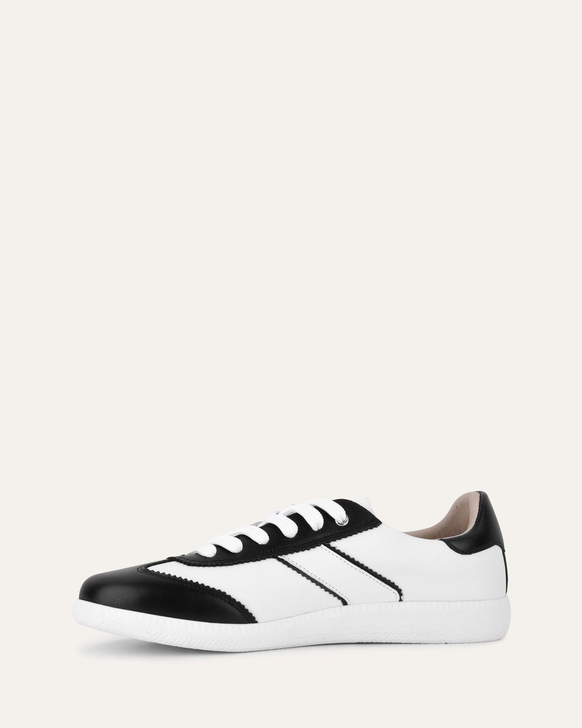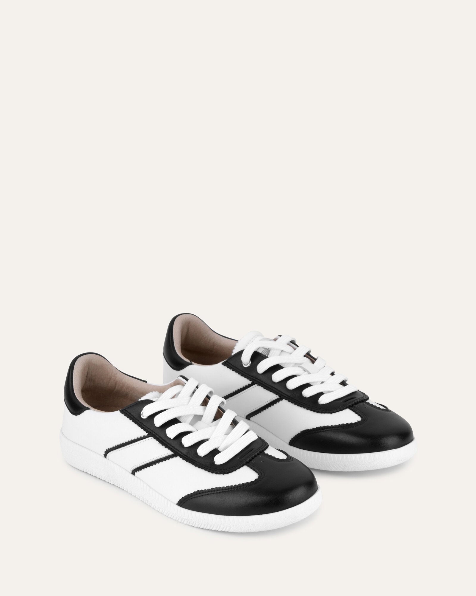 Meet the IT sneaker of the season, LOLA. The perfect all rounder sneaker that will be on high rotation in any wardrobe features a soft kid leather upper, silver metallic toned hardware detail, a contrasting colour palette finish and flat white cotton laces. Wear them with everything from your favourite jeans to loose tailoring.