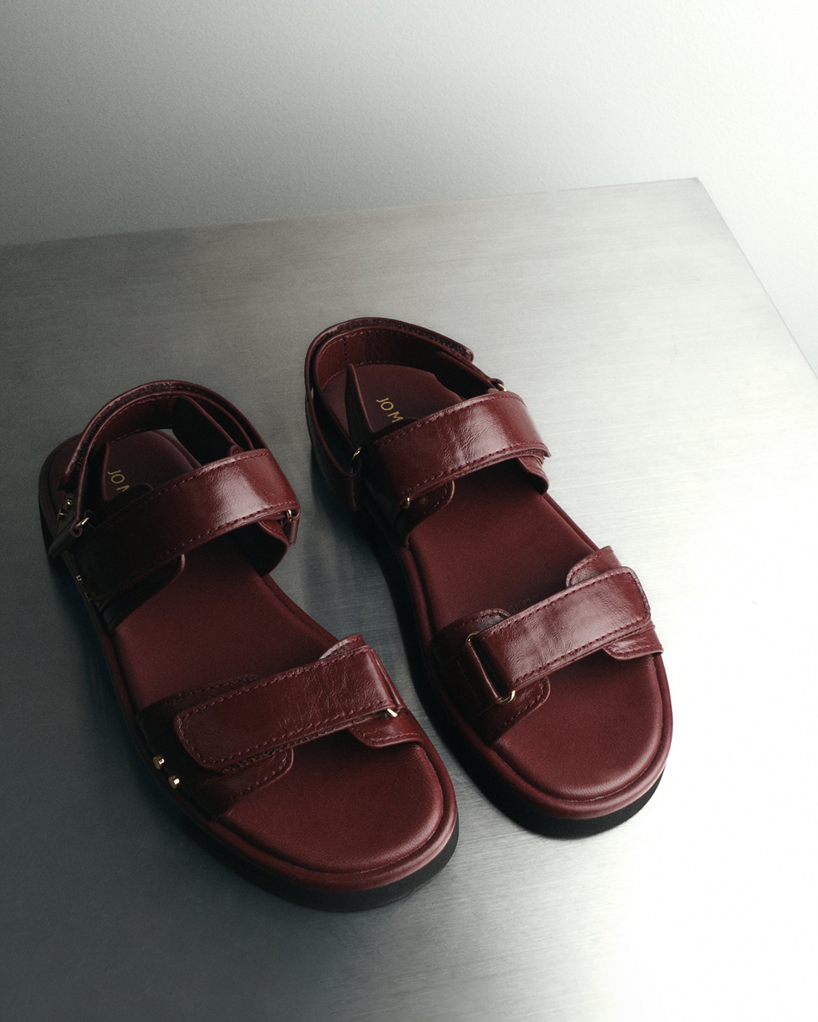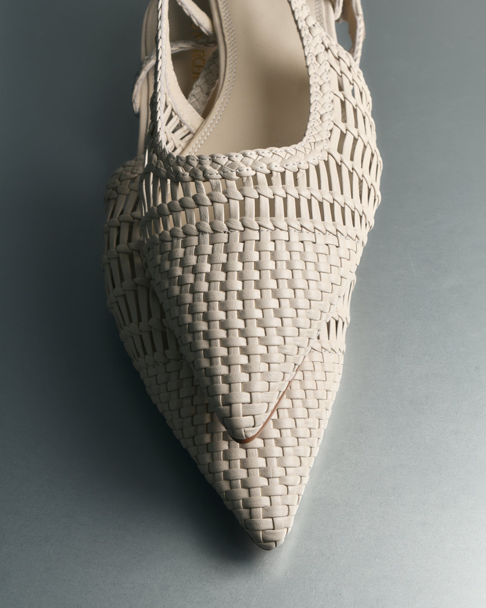 The Oran flat slide redefines casual comfort with its softly squared toe and sculptural caged clog design. Crafted from crinkle goat leather and set on a moulded footbed, it offers texture, support, and a modern edge for everyday wear.